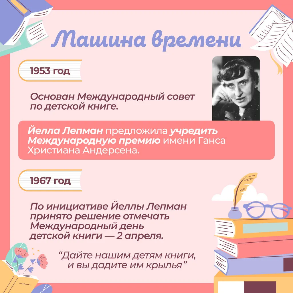 Ежегодно 2 апреля, в день рождения великого сказочника из Дании Ганса Христиана Андерсена (1805–1875), весь мир отмечает Международный день детской книги. Его празднование установлено в 1967 году Международным советом по детской книге по инициативе немецкой писательницы Йеллы Лепман.