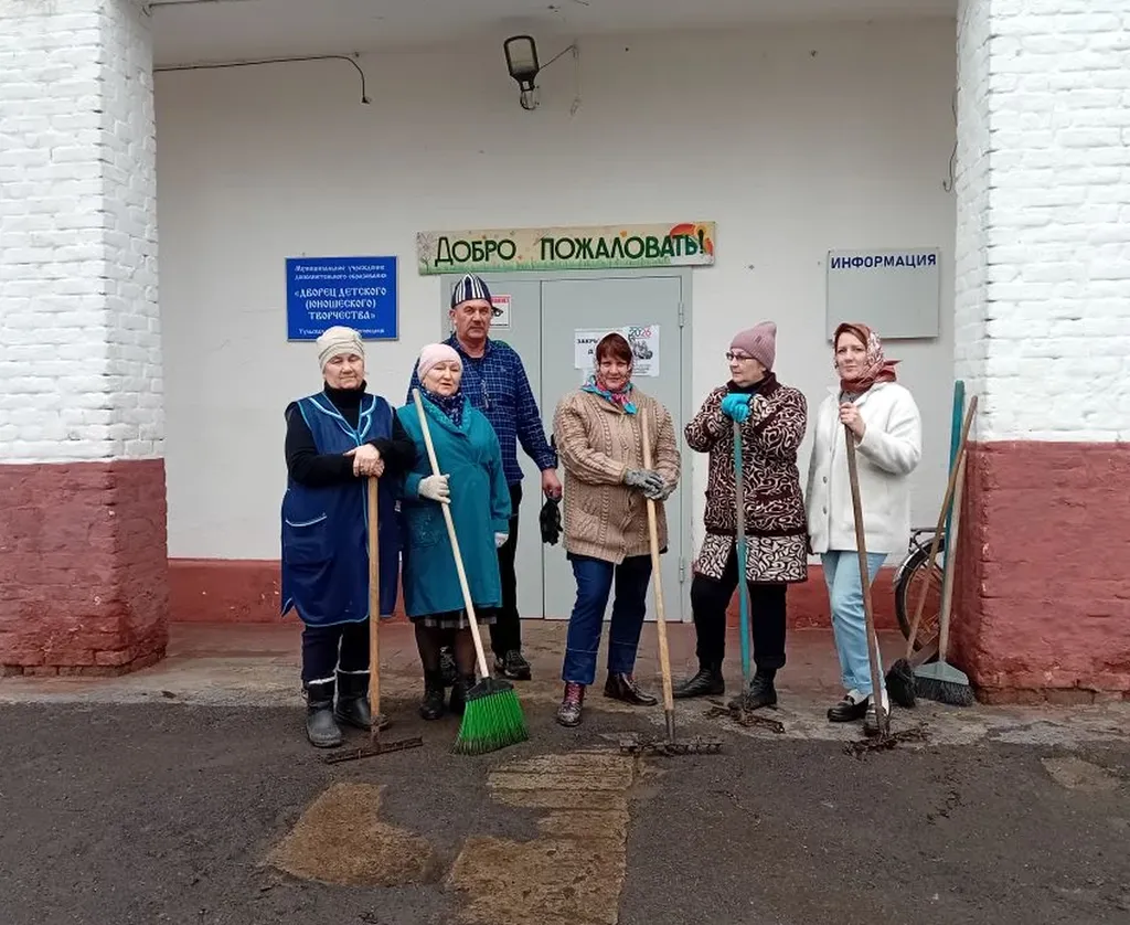 Участники с энтузиазмом взялись за работу: собрали мусор, убрали опавшие листья, ветки и сухую траву. Благодаря слаженной работе коллектива территория Дворца стала заметно чище и ухоженнее.