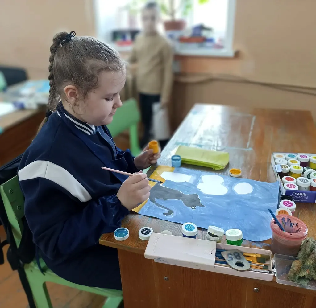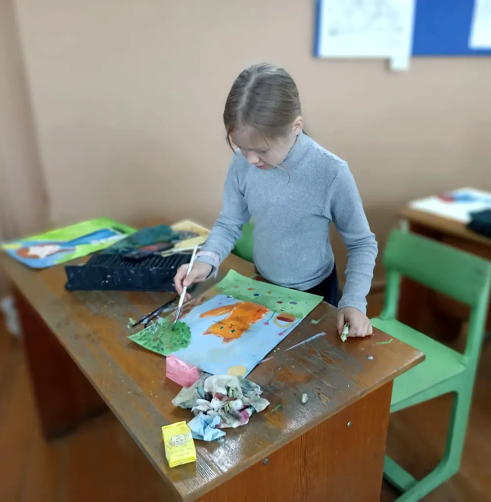 На каждом занятии по изобразительному искусству ребята с увлечением погружаются в творческий процесс: с помощью кистей и красок они создают по-настоящему маленькие шедевры, полные фантазии и индивидуальности.